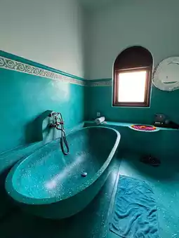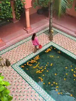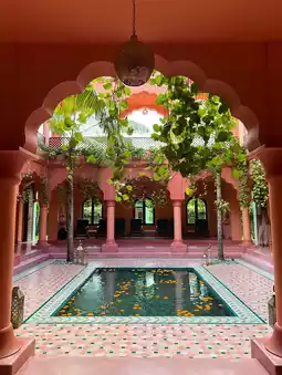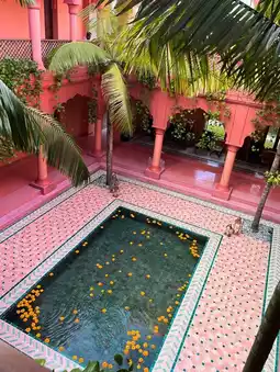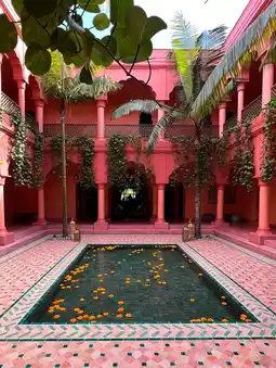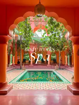 The Jaipur inspired interior at Bodyworks spa in Bali features a warm and inviting atmosphere with vibrant colors and intricate patterns. The walls are adorned with intricate tile work and colorful tapestries, while the furniture is made of rich woods and plush fabrics. The overall effect is one of relaxation and comfort, perfect for a day of pampering and relaxation.