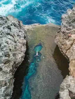 Our tip: When you are arriving, there is a man collecting the entrance fee. We would recommend to first park your bike there because that´s where Broken Beach is! Enjoy the view you will get to see and then keep going on the bike to the proper parking spots where is Angell’s Billabong. This way you can now just jump into the natural pool and soak everything that’s around you.