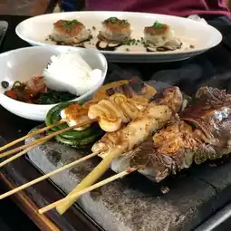 At Chandi, they make their bebek betutu with a blend of sixteen spices and serve it with duck sate over sugarcane and a salted duck egg salad.
