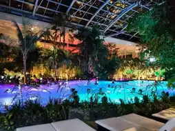 Therme București, Europe's largest wellness center, spans 250,000 m² just 15 minutes from Otopeni Airport. Opened in 2016 under a stunning glass dome maintaining 29-30°C, it offers a tropical escape in Romania's heart. With over 800,000 exotic plants—palms, orchids, and rare species—the botanical garden provides a lush backdrop for ultimate relaxation.