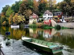 * Great spot for photos and views of the river and half-timbered houses.