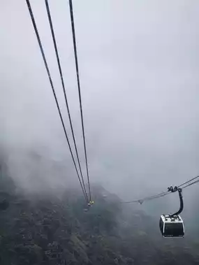 Of course, we chose to take the cable car because it is the longest cable car in the world at 6,292 meters. It took about 15 minutes. The view below was terraced rice fields. After a while, it was a view of the mountains with a very natural waterfall. During this time, we sat through the fog where we couldn't see anything for several minutes. When we reached the station, the view was like riding a roller coaster until we broke through the fog and saw the temple on the top of the mountain, which was the final station before walking up to the top of Fansipan.