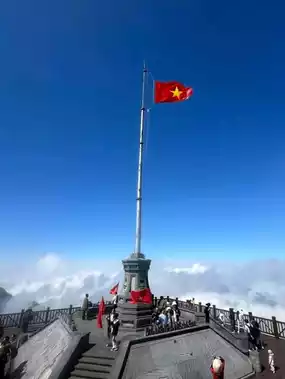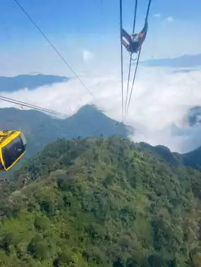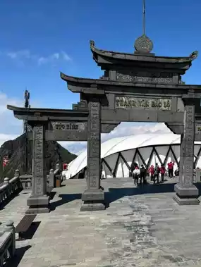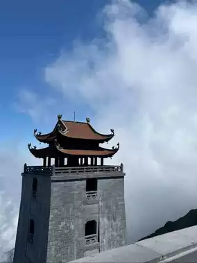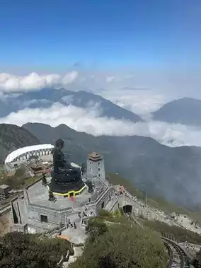 Take the cable car to see the beauty of Fansipan Mountain ✨ The atmosphere is very good. It is very high up. When you look around, there are clouds and fog all over. If you are afraid of heights, try to look around. Don't look down. You have to take a camera and take pictures to enjoy the atmosphere until you reach Fansipan Mountain, which is the highest mountain in Vietnam and is nicknamed the roof of Indochina. The air is very good. When you look around, there is fog covering the mountains and the blue sky. It is very beautiful. Walk and enjoy the beauty of the architecture on the mountaintop. It is worth coming to Sapa.