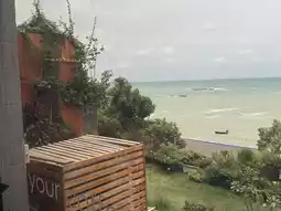 This shop is a sea view cafe. The front may be just an ordinary shophouse, but the 180-degree panoramic sea view appears in front of you without anything blocking it. When you go in, there are a lot of people, but it can accommodate a lot of customers. This shop has 4 floors of seating: Floors 1 and 3: air-conditioned areas, suitable for working or reading books. Floors 2 and 4: open-air areas.
