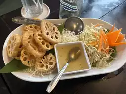 🪷 Bua Terrace Cuisine & Café is located in Ban Chang, Rayong. It is both a café and a restaurant. The shop has a shady bamboo-style atmosphere by a lotus pond. There are both air-conditioned and open-air areas.