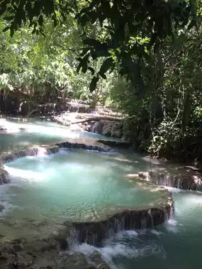 The uniqueness of the Kuang Si waterfall is multiple pools with different colours at different season.