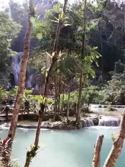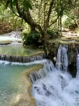 Kuangsi Waterfalls is considered one of the most famous scenic spots in Luang Prabang, with many natural swimming pools that attract outdoor enthusiasts from all over the world. The waterfall has a small path at the bottom that can be climbed to the top, and the primitive steps are not very popular for running, but it is worth spending about half an hour climbing. Three kilometers ahead from the top, there is a spring water cave hidden deep in the jungle. The waterfall's water source is said to be quite boring, so I didn't continue there. Going down the mountain is even more dangerous. On the way, there was a slip under my feet that startled me. Fortunately, Miss Spain reached out to save me and helped me. The Guanxi Waterfall in Luang Sa Prabang is so famous! Tiffany's blue water was like a mirror, layered layer by layer and flowing down smoothly, driving the scholar to use the hands and feet of a little sister from an unknown country behind her“
