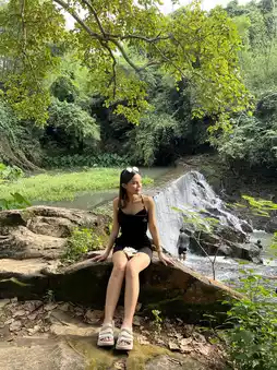 In addition to playing in the cool water to refresh yourself, tourists also like to sit, relax, and enjoy the beautiful natural scenery.