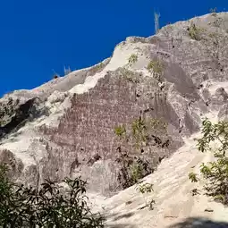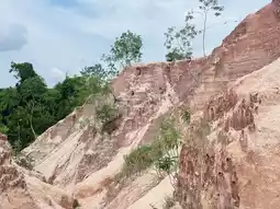 📍In the past, there was a mining concession in this area and the sand that was extracted and separated from the minerals was piled up. After many years, it has become a pile of sand with alternating heights like this. In some places, the sand has slightly slid. If you want to go up, be careful.