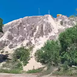 📍It is a very large pile of sand that has been piled up for a long time. It has been eroded by water and wind until it looks like a mountain with alternating heights. The sand grains are light brown and gray, reflecting light very well.