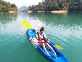 Beautiful accommodation, good price, mountain view in front of the accommodation next to the emerald green freshwater sea or simply called the Guilin of Thailand. The accommodation is charged per person/per person, two gray banknotes with change. Special 3-meal buffet, full, refill as much as you want. Welcome tourists with Welcome Drink and also have a service to sell drinks to your room. Activities while relaxing, kayaking or swimming in front of the house. Take a boat to watch the sunset, watch wild animals come down to drink water by the dam, which is a very unseen image because if anyone is lucky, you may see a herd of elephants or wild buffalo. Anyone looking for accommodation with complete facilities must come here.