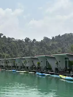 Modern style accommodation for those looking for a place to stay during the holidays. The accommodation is located at Ratcha Prapa Dam, Khao Phang Subdistrict, Ban Takhun District, Surat Thani. You can reserve a room and contact us for more information at 091 036 9119. There are many prices for accommodation packages. It includes food and boat fare. Take you to take pictures with the mountain called Thailand's Guilin. It is very beautiful. There are activities to take you on a boat to see the sea of fog in the morning. Paddle boating, swimming, very beautiful. Buffet food, delicious. It is an accommodation where we can stay to the fullest. Not crowded, beautiful nature
