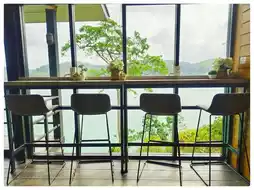 🧋🌲Here you can sip a drink while enjoying the beautiful view of the Ratchaprapha Dam in a chill way