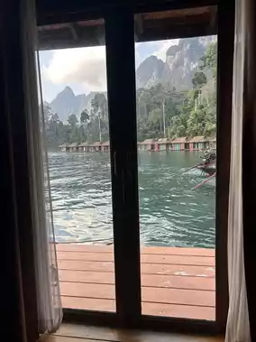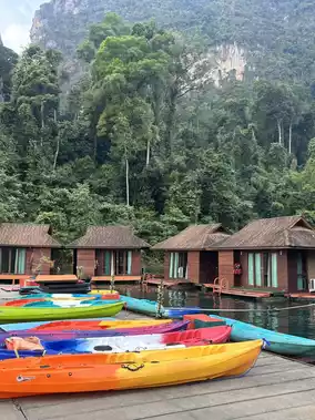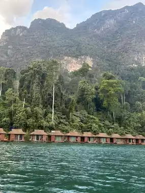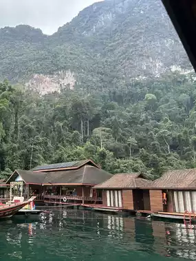 Looking for a relaxing getaway? Today, Ploy will introduce you to another national park in Thailand, "Khao Sok National Park, Surat Thani Province." Within this park is a famous tourist attraction: Cheow Lan Dam. This freshwater dam is characterized by its blue-green water. There are several riverside resorts offering a variety of fish. Boat trips are also available around the dam. This time, Ploy stayed at a riverside resort in the park. The weather was perfect, allowing us to swim all day. The weather was cool and not too hot, perfect for relaxation.