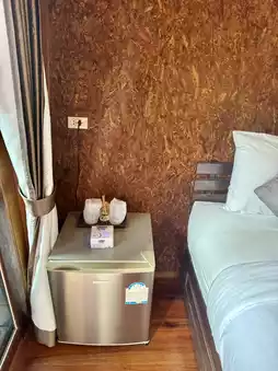 Review of accommodations near Cheow Lan Dam. Perfect for those who want to... Take a morning boat trip to Cheow Lan Dam. Conveniently located, no need to drive far or wake up early. The accommodations are fully equipped with TVs, refrigerators, and air conditioning. There's also a dining area where you can enjoy a riverside meal with a wonderful atmosphere.