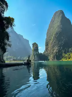 2. Cheow Lan Lake: An artificial lake created in 1982 after the construction of the Ratchaprapha Dam. Its emerald waters surrounded by sheer limestone cliffs are the hallmark of Khao Sok.