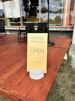 The lush natural scenery visible from the cafe's windows creates a relaxing moment. 🌼