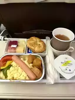 The flight time was about 5.5 hours, and the in-flight meal was served about 1.5 hours before arrival🍽️