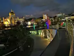 Behind the park, there is a footbridge leads over the Kedayan River to the stilt water villages on the Sungai Brunei.