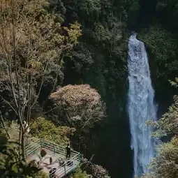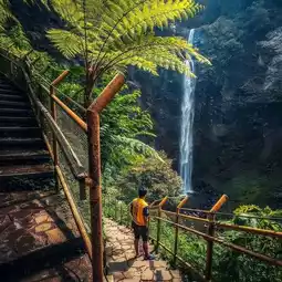 Curug Cimahi Bandung is one of the tourist attractions in Bandung that has not been visited by many. Curug or Cimahi waterfall is easy to reach and is located right on the side of the Colonel Masturi highway and not far from Bandung Adventist University. The name Cimahi comes from the name of the river that flows above it, namely the Cimahi River which originates at Situ (lake) Lembang and flows into Cimahi City. This waterfall is located at an altitude of 1050 m above sea level with temperatures in this area ranging from 18-22 degrees Celsius Access from the entrance gate to the location of the Cimahi waterfall is quite good. You will go down the stairs for about 15-20 minutes with good and well-maintained conditions. There are quite a lot of stairs, so you will be quite tired when going up later. However, along the stairs there are many shelters and rest areas, so you can easily rest. It is recommended to use comfortable sandals/shoes when visiting here. Public facilities available at the location of Curug Cimahi include stalls, prayer rooms, rest rooms, and adequate rest areas. In general, the condition of this tourist attraction is quite well maintained and clean. In addition, the condition of the water is quite clean. This is indicated by the large number of needle dragonflies and butterflies which are usually parameters of the health level of water in one place . The parking lot is in the area near the entrance gate. Now that it has been developed with a rainbow waterfall, there are additional decks for visitors to enjoy the atmosphere around the location.