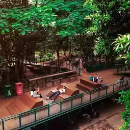 Forest walk Babakan Siliwangi is a public facility in the form of an urban forest. This forest is an urban forest that is still active in the city of Bandung until now. It is strategically located in the Taman Sari area, close to the ITB campus and the zoo. This area has a cool nuance because it is dominated by shady trees. Wooden and iron bridges that are connected to each other around this area become a path through the forest. Visitors can walk on a wooden bridge while enjoying the fresh air in this urban forest area. Visitors who come and want to travel to this urban forest are not charged a ticket because it is a city park. The costs incurred are only for parking, the amount is Rp. 3000-Rp. 5000 depending on the type of vehicle. The main activity that can be done in this place is exercise. In accordance with its function, the Babakan Siliwangi Forrest Walk was made for the health of the citizens of Bandung. However, because of its exotic location, Forest Wak often switches functions without losing its main function. Exercising in this theme is the most fun if you are alone with your partner, the romantic place makes exercising more fun. The trees that grow and stick hanging roots, make the atmosphere of the forest even more pronounced. In addition, the air quality is also very good for residents who exercise. The natural nuances caused by the shady trees in this area make this place the most sought after photo spot. Another uniqueness is, the bridge which is made as a walking arena also has a unique design. It further adds to the impression that this place is Instagramable. Its name is an urban forest, created to balance the urban air that is starting to become contaminated. The air in the Babakan Siliwangi forest walk area is very good. air-polluted motorized vehicles will not be too stifling in this area. The cool, fresh and cool place makes the forest walk very attractive to residents and tourists. Therefore, the forest walk of Babakan Siliwangi is also highly recommended for family vacations. Some of the points are even very suitable for small children. After walking and relaxing on the Forest Walk Babakan Siliwangi, visitors can try out the Baksil culinary tour. Indeed, there is no special menu for Siliwangi Babakan in this culinary area, but you can find many typical Bandung snacks. All Pasundan specialties such as tofu meatballs, batagor, sumedang tofu can be found here. This urban forest park is located on Jl. Tamansari No.73, Lb. Siliwangi, Coblong, Bandung City, West Java 40132.