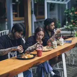 Nara Park had gone viral a few years ago. The concept of Nara Park is more of a park and gathering with a large family. The atmosphere in Nara Park is definitely perfect from any angle. At first I was confused how to order it. But it turns out that you can sit at any table and can order tenants in Nara Park. All of your menus can scan the barcode for each table. The baguet bread here is still crunchy when eaten. The taste of this dish is quite complex. There is salt from mozzarella cheese, paprika that adds freshness, sour from tomatoes, and beef that is still tender. Unfortunately the truffles here are dim and don't really come out of this dish.