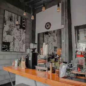 A cozy coffee place tucked inside an alley with a semi-finished exterior design on the building, yet it doesn't diminish its appearance; instead, it gives off a modern minimalist vibe. Plus, it has an aesthetically pleasing bathroom, perfect for those who love taking cute selfies. There are several spots here, but one favorite is the one facing directly towards the bar. Enjoy your coffee while watching the busy baristas behind the counter, and don't hesitate to chat with the friendly staff.#coffee #coffeeshop #coffeehouse #coffeelovers #localguides #trip