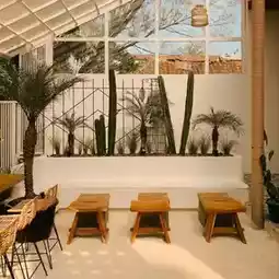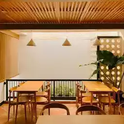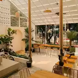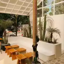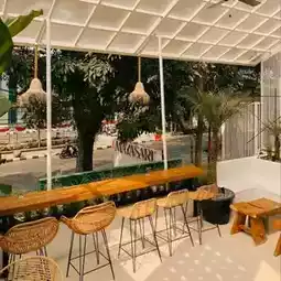 Embracing a tropical concept, my favorite spot faces Jalan Riau, it's nice to have coffee while watching the street. Several corners are also aesthetic and great for taking photos.