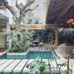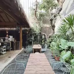 One of the Balinese tropical cafes in Bandung. The place is quite spacious and the decoration is Balinese style. The menu has Indonesian, Thai, Chinese and Western food. You must order the Mapo Tofu, it is delicious, salty, savory and spicy, the Char Kwetiaw is smoky and the meat is quite a lot, and the Watermelon Lemonade is super fresh. The Green Curry is not so good and the chicken meat is a little. For normal prices like other cafes, the parking area is limited. Overall Recommended!