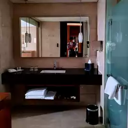 #BookLuxuryHotel HILTON Bandung Indonesia, one of the luxurious 5-star Hilton Honors hotels, is located in the heart of the entertainment city, not far from the airport and train station. A large shopping mall is also within walking distance. The hotel features a modern and beautiful design, spacious areas, parking space, a stylish swimming pool with a kids' play area, and a small pool table. Additionally, I noticed there is a fitness area that includes a hot water board, cold water pool, and sauna room. The restaurant is on the lobby floor, serving Asian and Indonesian cuisine, no Western food. The rooms are spacious and perfect for relaxation. The staff provides excellent and attentive service.