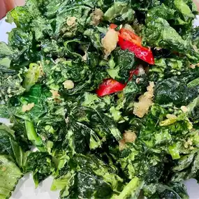 I order a set of Hainan Rice with roasted chicken and a fried Kailan. As you can see in the picture I shared, the portion of Fried Kailan is huge, maybe to much a solo traveler like me. 😂