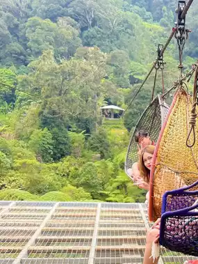 They have 2 types of tickets: Regular tickets for IDR 75,000, which cover only the suspension bridge and Rengganis Crater. The ticket I chose is the VIP ticket costing IDR 100,000. In my opinion, the VIP ticket is more worthwhile because it includes entrance fees to nearby attractions such as Phinisi Resto, Rabbit Hill, Balcone Spide, Phinisi Bridge, and more. Both tickets include hot sweet tea or hot coffee at their restaurant.