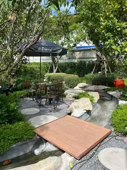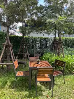 Baan Rai Coffee Ram Inthra is a warm, contemporary Thai-style cafe with a peaceful atmosphere. It offers both air-conditioned rooms and garden seating, perfect for relaxing or working.