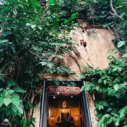 There is a Bodhi-covered church. The church of the temple is covered by 4 types of large trees: Bodhi, Banyan, Krai and Krang trees. In addition, the church does not have a gable or raka leaf like other Thai temples. These tree roots help hold the church in place for about 200 years.