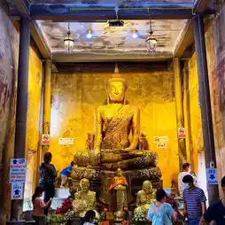 Inside the Bodhi-covered church is enshrined Luang Pho Phutthamaninil or Luang Pho Bot Noi or Luang Pho Dam, a Buddha statue in the Mara-Vijaya attitude from the late Ayutthaya period. It is a sacred Buddha statue that is highly revered by the villagers.