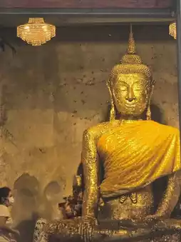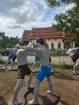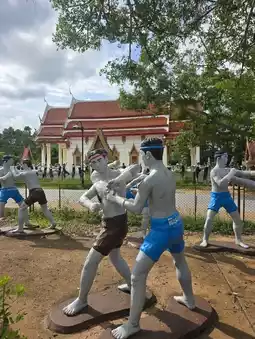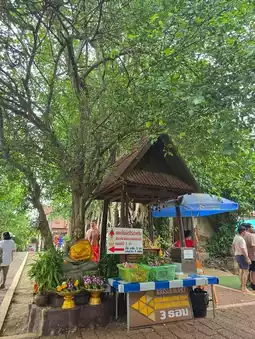 Not far from Amphawa Floating Market It is historically important and is known for its "Bodhi Tree Church", an old chapel covered with the roots of Bodhi trees, Krang trees and Krai trees, making it look Unseen and sacred. Bodhi Tree Church The highlight of the temple is the chapel covered with large tree roots. Inside is Luang Pho Nil Mani, a sacred Buddha image that people like to worship. Inside the chapel, there are also beautiful old murals telling the story of the life of the Buddha at Bang Kung Camp. The temple area used to be a military camp during the reign of King Taksin the Great. Currently, there is a replica of Bang Kung Camp for visitors to see. On the opposite side, there is also a small zoo with sheep, horses, camels and goats. You can bring your children to feed the animals.