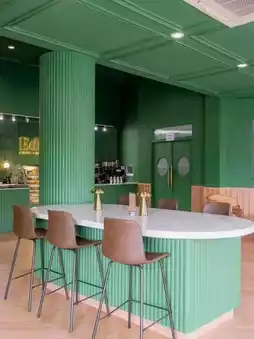 😝 Edith Coffee & Baking House is a green cafe that stands out with its warm and friendly atmosphere. The shop's decoration emphasizes simplicity but style. There are many beautiful photo spots to choose from, such as the window corner, the bar corner, or the sofa corner. Importantly, the shop has a bakery kitchen inside, making the aroma of baked goods waft throughout the shop. It invites you to sit and enjoy coffee and delicious desserts such as Coconut Baabin Waffles (young coconut baabin), which is the shop's recommended menu. If anyone is looking for a cafe with a good atmosphere with a menu of delicious drinks and pastries, don't miss it.