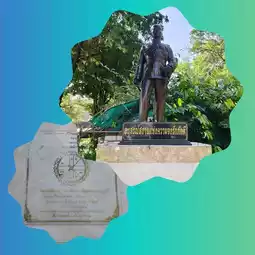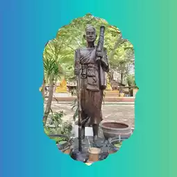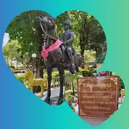 🪔There is a monument of King Rama V enshrined in the front yard, riding a horse and a standing bronze statue. There is also a statue of a wandering monk, a large white Buddha statue in a cross-legged position.