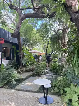 The moment you step in, the aroma of freshly brewed coffee and the gentle sound of a waterfall make time seem to slow down. The surroundings are lush with greenery, stone gardens, and charming fish ponds that instantly refresh your spirit. The cafe is designed with wooden tones and clear glass, allowing natural light to stream in, creating a warm and soothing atmosphere. It's perfect for light work or quiet moments with someone special. 💛