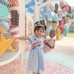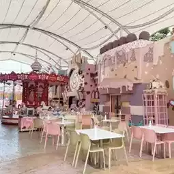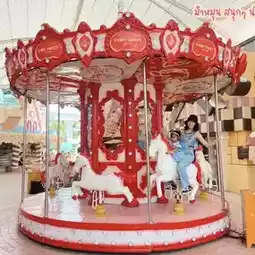 Because there are many photo spots. The highlight here is the bright red carousel. There is also an air-conditioned ball pit that children love.