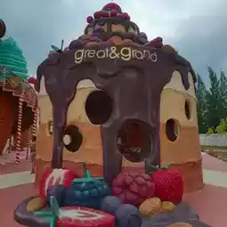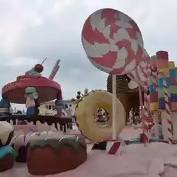 I highly recommend this place as it has many photo spots that kids absolutely love. They can snack around while walking, with pictures of cookies, sweets, and candies that are very beautiful. It's perfect for children as there are plenty of spaces for them to run around and play. There are also many photo corners, and the entrance fee is quite affordable. Children under 100 centimeters in height can enter for free, while adults are 120 baht. We visited on a weekday, so it wasn't too crowded, hehe. I recommend visiting this place, it's close to many other attractions.
