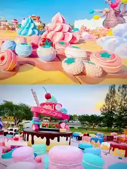 ⭐Pattaya Giant Candy House is a tourist attraction that combines a coffee shop, an ice cream shop, and various candy and dessert shops for check-in and photo taking. This is a super dreamy "dessert kingdom" where all desserts are huge, making people want to take photos crazily and want to eat them right after taking the photos. This is every child's dream house, and it really satisfies every child's childhood fantasy.