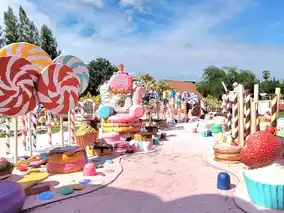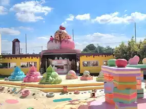 The park has created a dessert kingdom with super giant desserts, which are colorful and make many adults and children take crazy photos. The children are particularly happy running around the park.