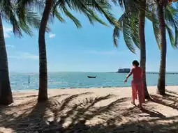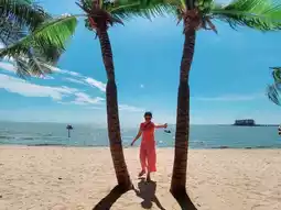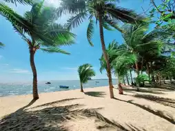 🏖🏖 The beach is wide and clean. There are coconut trees along the beach. It is a cool and beautiful photo spot. If you go during the day, there are hardly any people. But in the evening, there should be some people because the sunset should be beautiful.