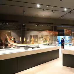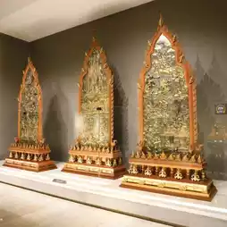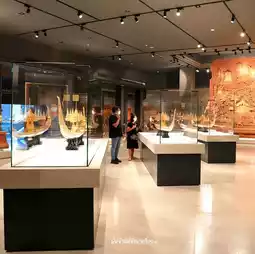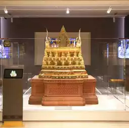 The large exhibition room displays handicrafts such as silverware and goldware, enamel, and a replica of the royal barge fleet from the royal barge procession.