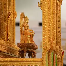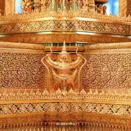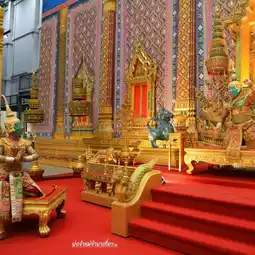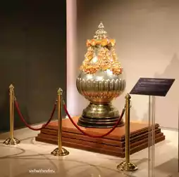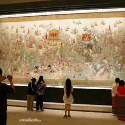 The second floor displays a large gold-filled scene from the Ramakien, using gold-filled work in 3D, and a scene of silk embroidery using the ancient method, using a small amount of silk. Or the smallest thread of silk embroidered with gradients and light and shadows to create a beautiful three-dimensional image, Buppa Mala, modeled from the Buppa Mala Maha Chakkraphat Phiman Throne Hall at the Amarin Winitchai Throne Hall in the Grand Palace, replicas of throne halls such as the Phuttan Thom Thong Throne Hall and the Phuttan Nakhon Kham Thong Throne Hall.