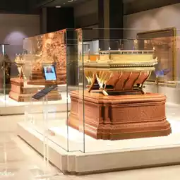 The museum is divided into categories, with a personal audio guide, a commentary screen, and a touch screen displaying various information about the pieces.