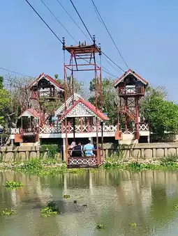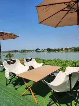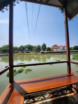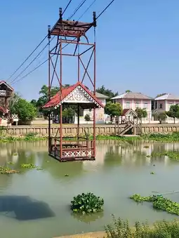 Ayutthaya cafe where you have to take a cable car across the river to the other side. The cable car seat has no control. You can go up and down by yourself. 😆😆 No one collects money, but there is a donation box for maintenance.