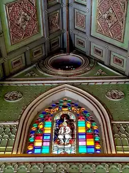 The temple is also decorated with stained glass depicting King Rama V, and the royal seal is displayed on the front.