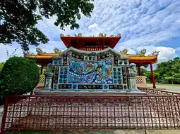 Wehats Chamrun Throne Hall is a two-story wooden building with Chinese architecture. The lower audience hall houses a "marble amphitheater."